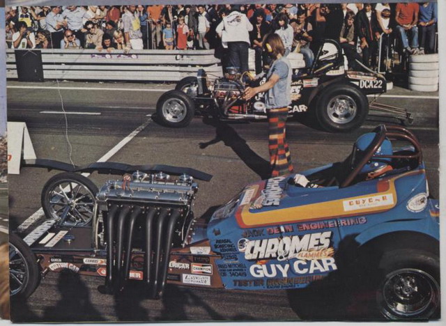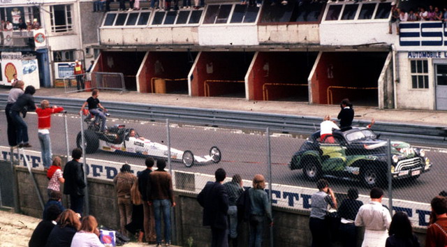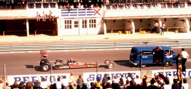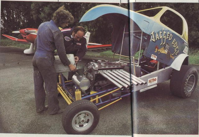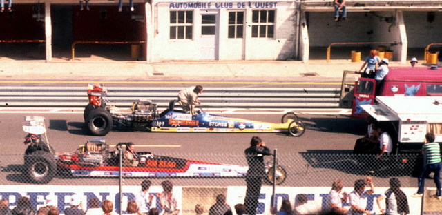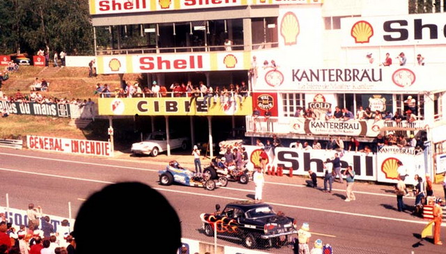 Ce Dragster Show était sous la bannière du Midland Cb Dragster Festival et se déroulais sur 200 mètres et le seule magasine existant qui le relatait, était "Pretty Car" de Patrice de Bruyne. Nous voici arrivé le jour de la course, LE MANS, là c’est sérieux, comme je l'expliquait juste avant, il a fallu s’inscrire, avoir des licences officielles, Une licence constructeur, (la licence pilote de drag international c’est pas du pissou de moineaux), passer les visites médicales...Mais c’est bon...40 000 spectateurs sont la dans les tribunes, les british débarques...Houille !!! C’est du vrais matos... des drags, des vrais des autos rachetées aux ricains, ils sont propriétaires de magasins de voiture us de l’autre coté de la mare ! Pas grave ils sont sympa et viennent là pour faire du spectacles pas pour nous ridiculiser ! Les primes pas de doute c’est pour eux ; (ils ont bien amorti le week end), mais en ce qui nous concerne, nous sommes allés au contact, et nous avons appris plein de choses et il nous faut maintenant les digérer...et ont verra l’année prochaine !