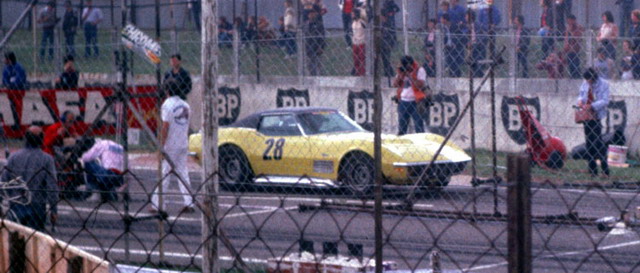 A l'époque, j'étais au milieu d'un groupe de fêlés et çela m'a beaucoup aidé car nous fourmions un groupe assez soudé, et chaque fois que je partais aux usa ,j'emmenais des potes qui eux ensuite en emmenaient d'autres...c'était beaucoup plus compliqué quand même que maintenant, et la première fois,je suis parti avec un charter pour DAYTONA de moto revue, avec tous les pilotes qui courraient pour la course de Daytona, et en plus c'était un français ,Patrick PONS qui avait gagné cette année là ! Je ne vous dit pas la fête dans le DC 8 d'American Airline au retour ! Je partais avec le magnétoscope, soit disant portable, le premier qui venait d'être mis sur le marché, et au retour projection privée dans le 93 de tous les événements automobiles que j'avais filmés pour mon club ! Il y avait aussi des kilos de pièces détachées pour les potes, j'en ai même ramené pour "Coluche", encore une autre belle histoire avec ses souvenirs...j'allais directement chez SUMMIT, à Akron, chez qui je suis client depuis 30 ans, alors que certain le découvre aujourd'hui, et je passai une journée entière pour la commande, avec un vendeur qui nous expliquait du mieux possible, ensuite, direction la Californie pour la même chose chez PAW et EGG MACHINE...OUF !!!  Le samedi matin, nous chargeons le coffre avec les caisses à outils, le gros Crick, une batterie, etc., etc==>Direction l’autoroute de l’ouest...je suis tellement crevé que je m’endors au volant aussi, je le passe à mon pote et je pique un roupillon quand tout à coup, un bruit d’enfer me réveille en passant dans un souterrain..une des balles obturant l’échappement a sauté sous la pression des gaz ! Mon pote a doublé une voiture et mis un peu trop la patate, ouf c’est pas grave le conducteur d’a coter n’a pas bien compris mais il a surtout eu une grosse peur !!! Un truc rigolo, des fois j’ouvrais les Y en roulant, les balles sautaient sous la pression mais elles étaient retenues par une chaînette et je me retrouvais en "échappement libre"...les conducteurs des voitures doublées, cherchaient si quelque chose passait au dessus de leur tête, un 747 par exemple !!! Arrivé sur le circuit, il faut se remettre au boulot...les potes arrivent, tous le monde veux voir le blower...j’arrive même plus à tourner autours de la voiture ...pas grave ont est là pour ce fendre la pêche... je suis pas tellement compétition, je participe et le reste je m’en fou ! C’ela permet d’être au cœur de l’évènement ...les essais arrivent, ça ratatouille a mort, ça gueule de partout dans les tribunes, pleines à craquer...Je ne me souviens même plus de la course, j’ai été éliminé par SYLVIA HAUSER qui n’a pas trop forcé sur ça Corvette de course. Il faut dire que le blower monté en trois jours, l’arrivée par la route, c’est au prix de plein de petits incidents...Grosse odeur d’essence dans la voiture je descend en catastrophe, après avoir actionné le coupe batterie, et j'aperçois une durite d’essence mal serré qui a sauté sous la pression de la pompe ! Enorme fumée noir par les echapemments, les pointaux d’un carbu sont bloqués ouvert et l’essence coule à flot dans le moteur, plein de résidu de caoutchouc dans les cuves, j’avais oublié de souffler les durites d’essence !!! Retour par la route sans problème ou je m’en souvient plus lol !!!