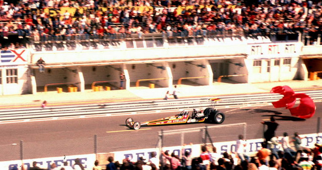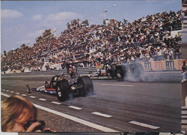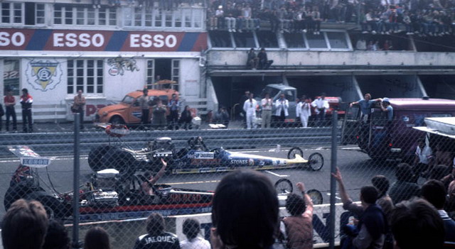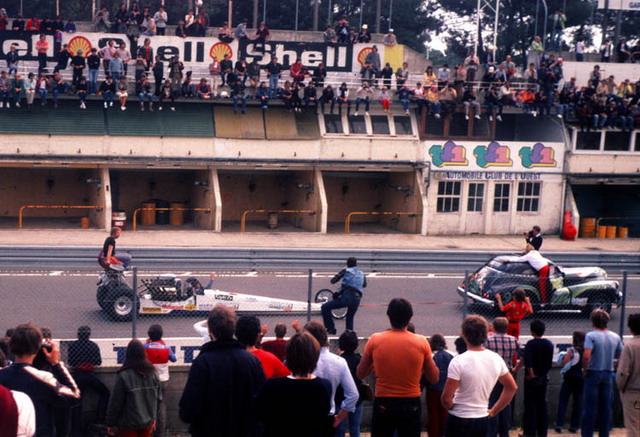 Voila donc les premiers runs de dragster en France, sur le circuit du Mans de Midland, grâce à la célèbre revue "CHROME et FLAMME" qui était l'un des gros sponsor de l'époque, mais cette aventure a été reprise par différent s circuits comme, celui "d'Albis" ou celui de "PAUL RICARD"...et cette histoire est aussi la votre comme le montre vos photos ou vos souvenirs, n'est ce pas ? Par la suite, des clubs de passionnés de muscle cars, de rods, se sont formés pour continuer l'aventure sur des circuits privés, des grosses boites ont aussi participé au spectacle avec des moyens important, comme par exemple, Lariviere organisation qui a en particulier développé les "Dragster Festival de MONTHLERY... énorme machine évenementiel ou tout l'autodrome etait mobilisé et ce sont des souvenirs mémorables, peut-être pas toujours racontés dans l'ordre, mais je suis pas historien ou journaliste juste un passionné qui vous raconte une tranche de vie et si vous êtes toujours intéressé ? ... je continue !
