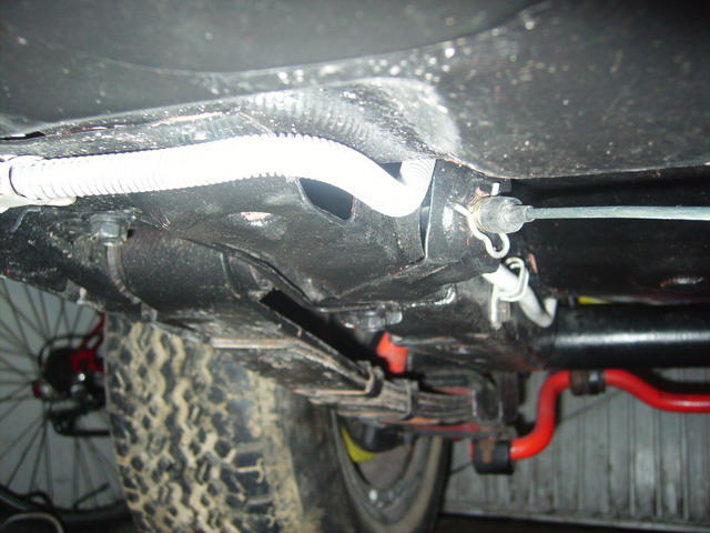 La ligne est ici passée dans le châssis avec un caoutchouc de protection qui la maintien un peu aussi pour l'empêcher de bouger et frotter le châssis !