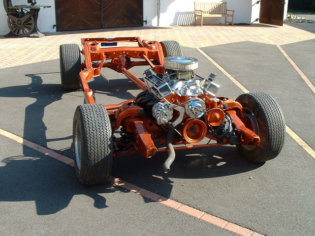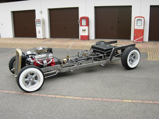 - Que dire de plus pour vous commenter les photos suivantes....Jean-François ne se contente pas d'exceller dans le traitement des coupés sport américains puisqu'il va même jusqu'à se lancer dans le domaine des Hot Rods, domaine bien connu pour être particulièrement difficile, et  qui demande de nombreuses compétences, de grosses connaissances techniques et pratiques avec toujours autant de courage à fournir bien sur, compte tenue de la fabrication complète, d'un bout à l'autre, que ce type d'engin nécessite...sincèrement ... BRAVO J.F !!! (Juste pour exemple, il a purement et simplement crée son propre châssis, visible sur la photo ci dessous !)