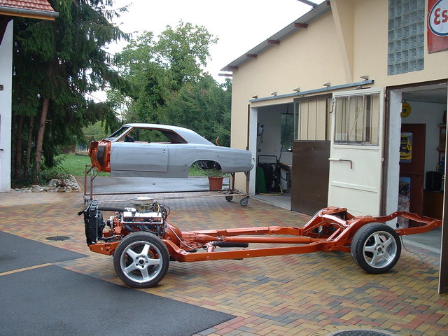 Avant de poser tout cet ensemble mécanique, notre amateur va effectuer une restauration de folie qui passera par la séparation de la coque et du châssis afin de sabler l'ensemble et de remettre à neuf ce qui était nécessaire à restaurer !