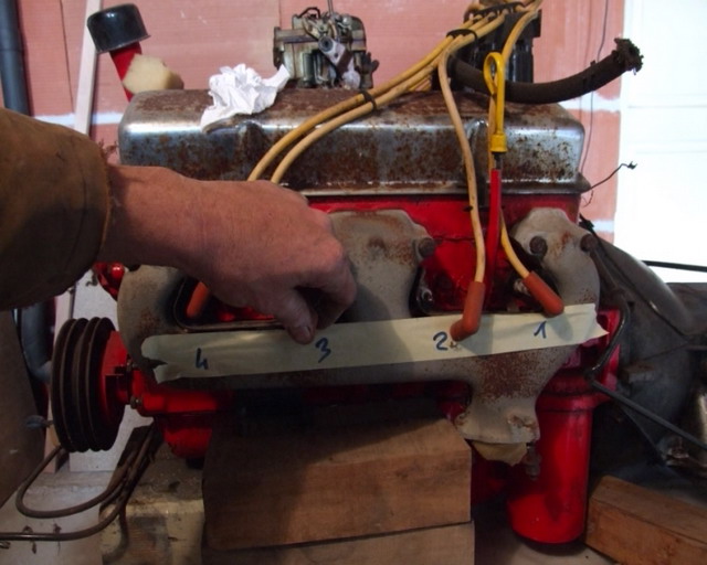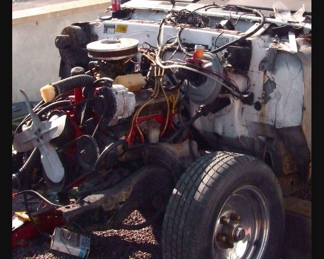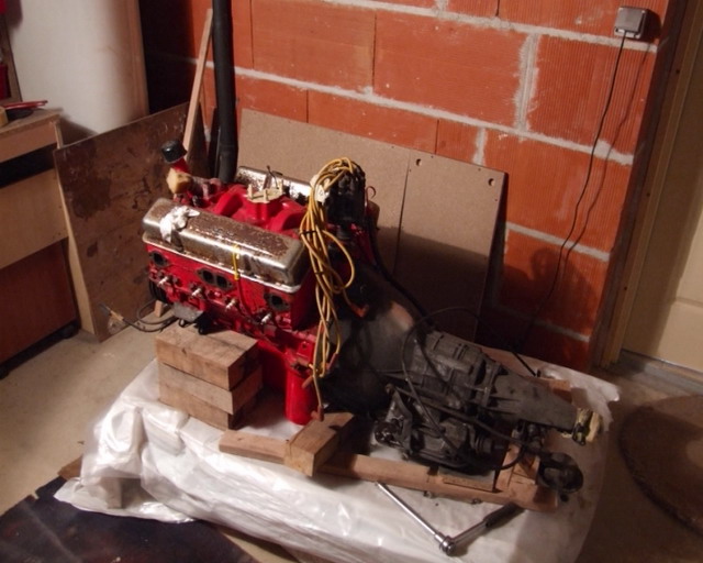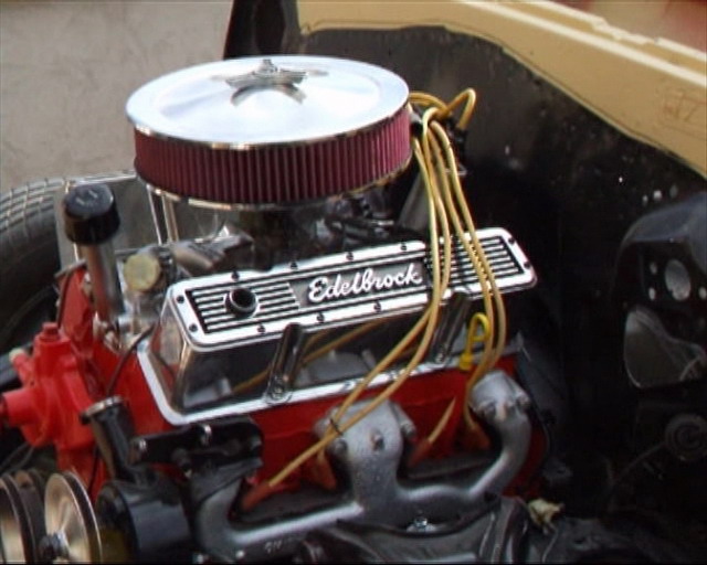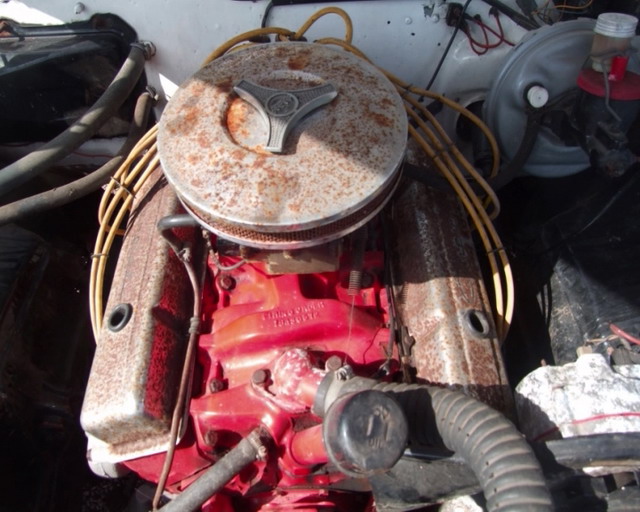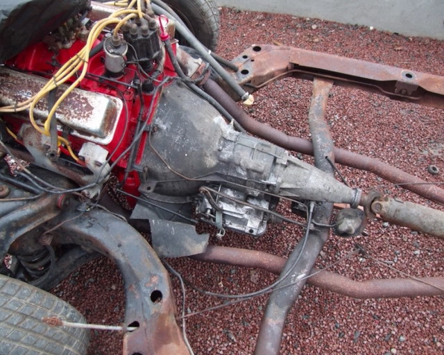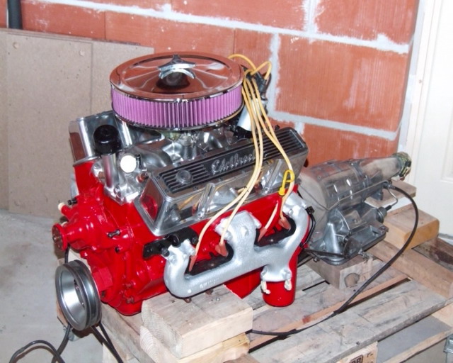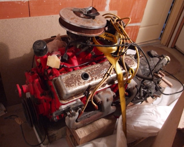 Moteur 283 ci"stock", Boite Powerglide 2 vitesses, Collecteur d'admission (à vérifier ???), carbu Holley 4 corps (à vérifier ???) Cfm et Allumage électronique. (à vérifier ???)