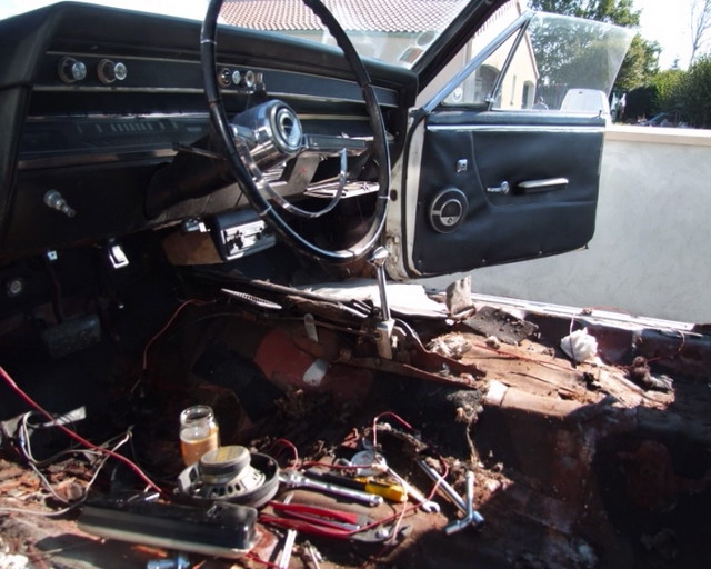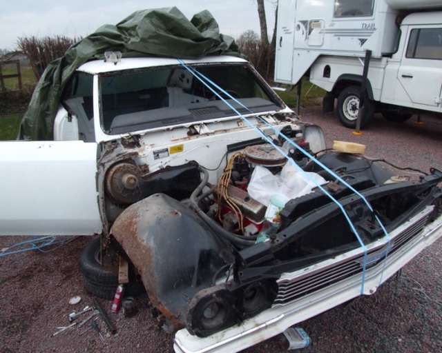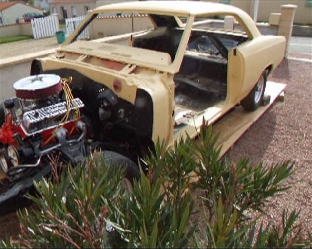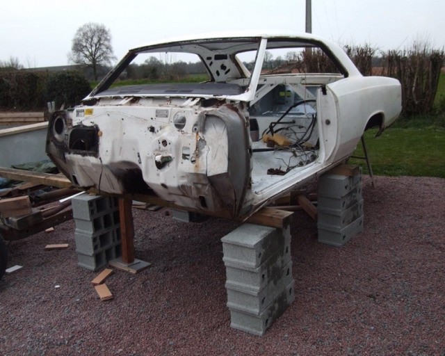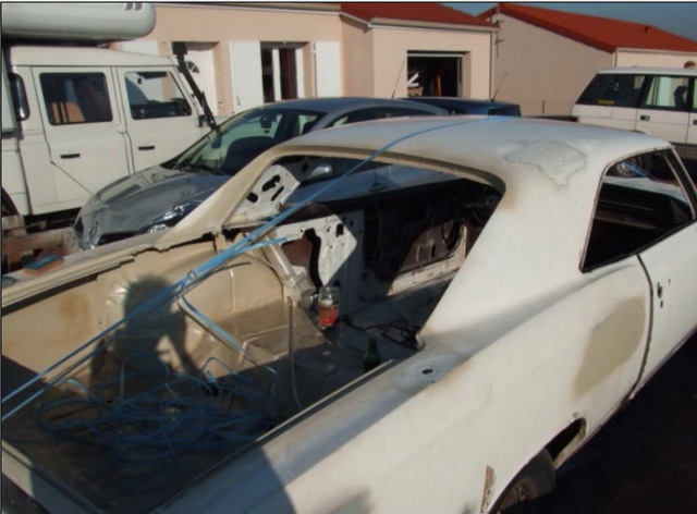 L' état de la voiture était lamentable, on aurait dit une cage à poule, les sièges étaient défoncés, tout était pourri à l'intérieur et pas vraiment génial non plus à l'extérieur; beaucoup de trous dans la caisse à la limite du restaurable, à l'époque, les copains m'ont dit que j'étais fou d'avoir acheté ça, que je n'arriverai jamais à la restaurer et que je finirais par laisser tomber, mais quand ils voient ma chevelle maintenant, ils ne chantent plus le même refrain !