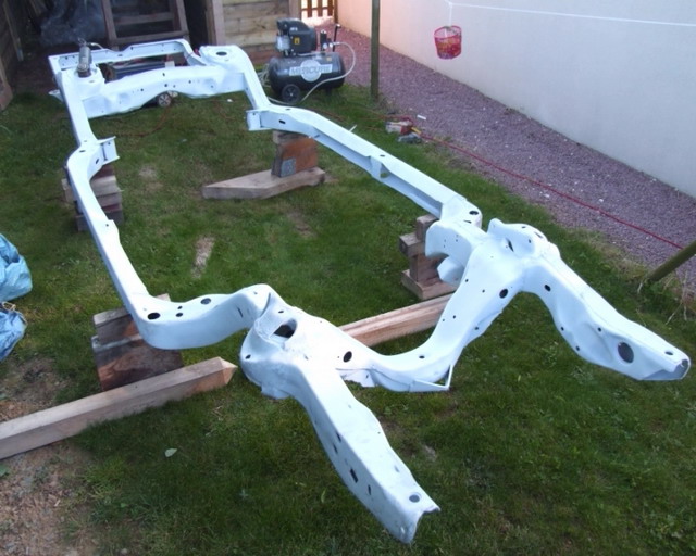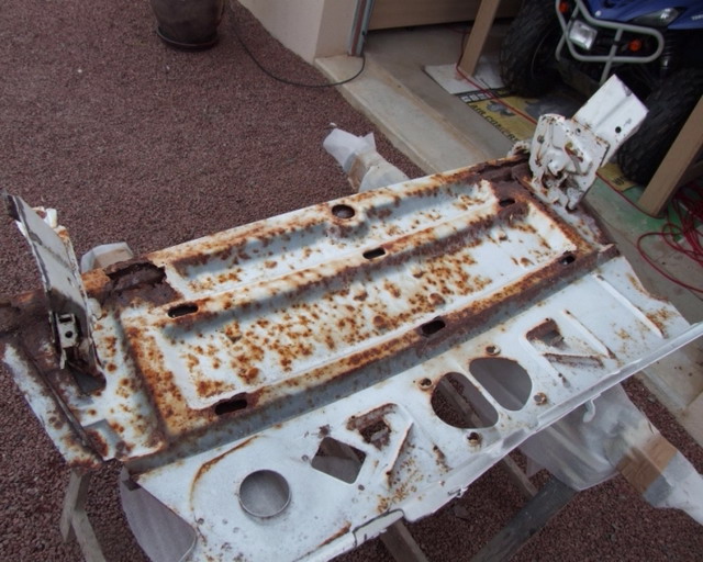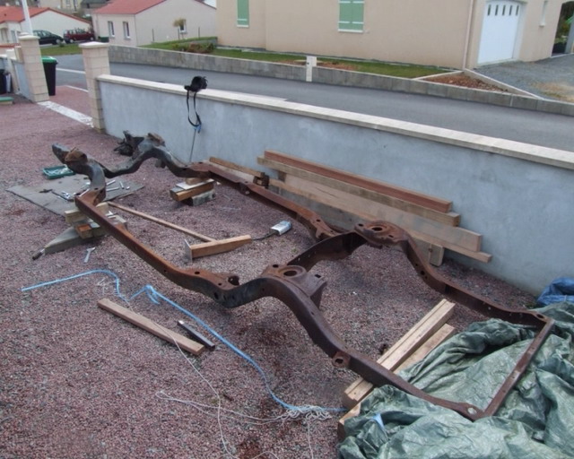 j'ai commencé par faire 800 photos, j'ai pris des notes, fait des croquis et j'ai tout démonté de A jusqu'à Z en prenant des clichés partout; après une période d'au moins 6 mois j'ai fait sablé le châssis mais pas la caisse pour des raisons de budget mais aussi par peur qu'il ne reste rien, aussi j'ai donc joué de la disqueuse avec brosses métalliques, des heures, des jours...j'ai bouffé de la merde, (j'ai vu sur ton site que je n'était pas le seul