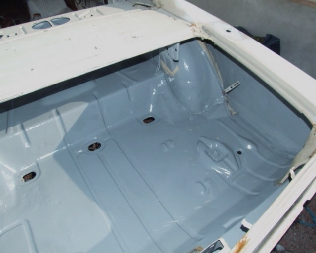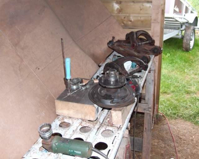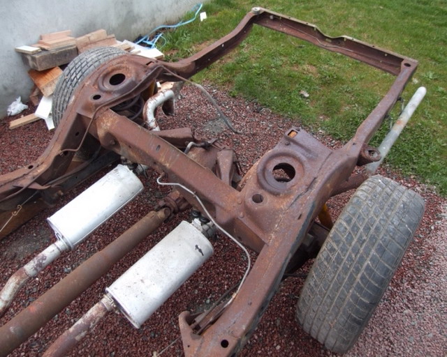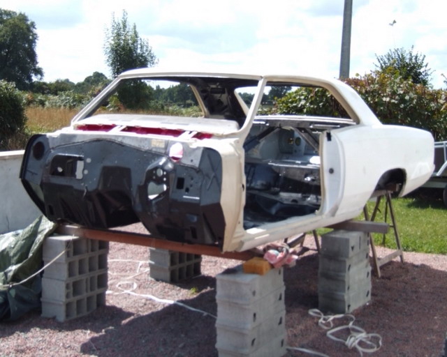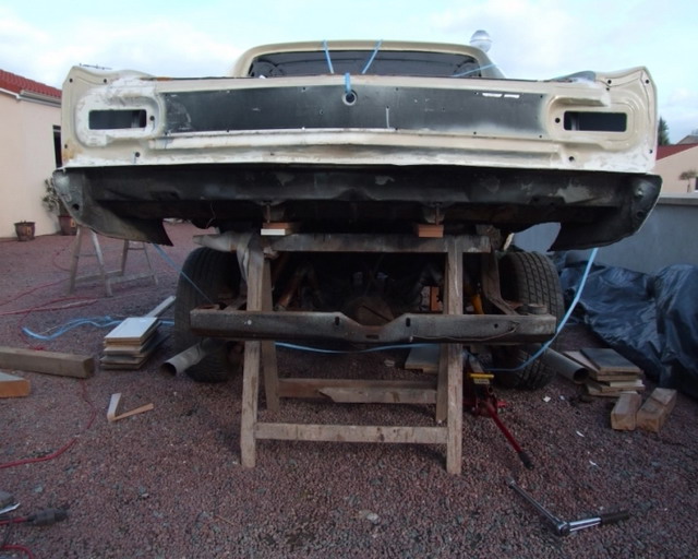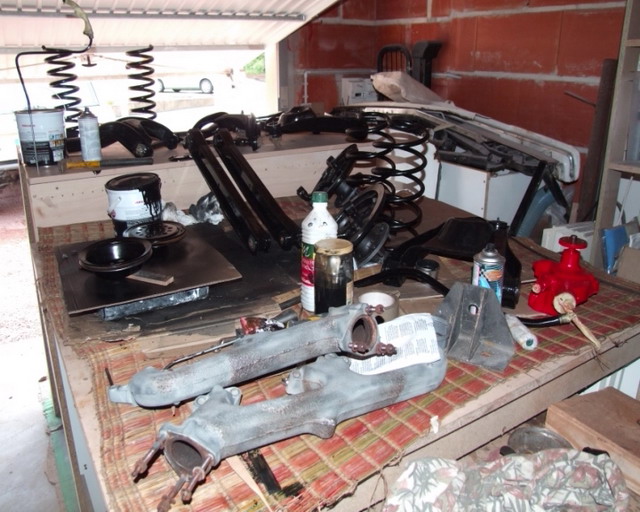 J'ai changé tout le circuit de frein et commencé à remonter en changeant au fur et à mesure les pièces pourries...j'ai apprêté la caisse avant l'hiver, (jusque là je faisais tout dehors car je n'avais pas assez de place dans le garage mais par la suite, j'ai décidé de la mettre a l'abri, c'est quand même mieux).