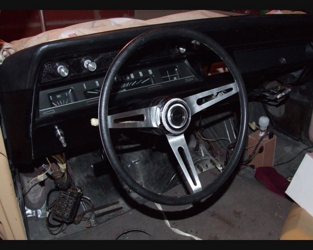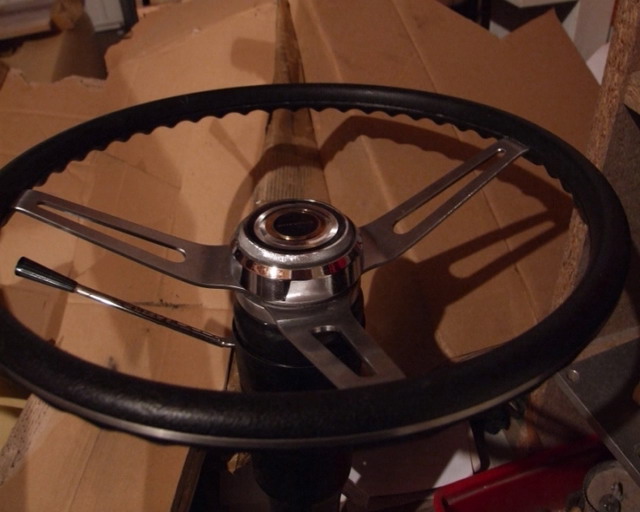 j'ai débuté le remontage de l'intérieur, (tableau de bord,chauffage ,frein ,direction), et j'ai remplacé le volant, plutôt moche par un modèle de corvette 59, déniché sur ebay !