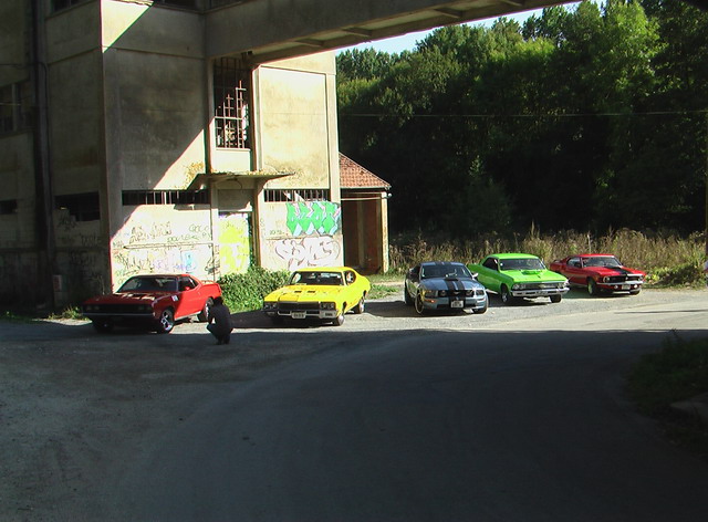 Comme d'habitude, les teintes de nos autos sont en contraste avec la scène ou le décor mais il est vrai que cette fois ci, on peut imaginer que ce vieux silo colle bien à la génération de nos voitures pour avoir très certainement fonctionné à l'état neuf, à la même époque !