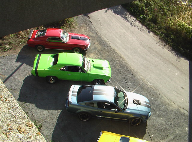 Une petite Mustang de 2006 avec la gueule bien agressive...(et qui appartient à notre ami Pascal), se laisse entrainer dans les mauvais coups...