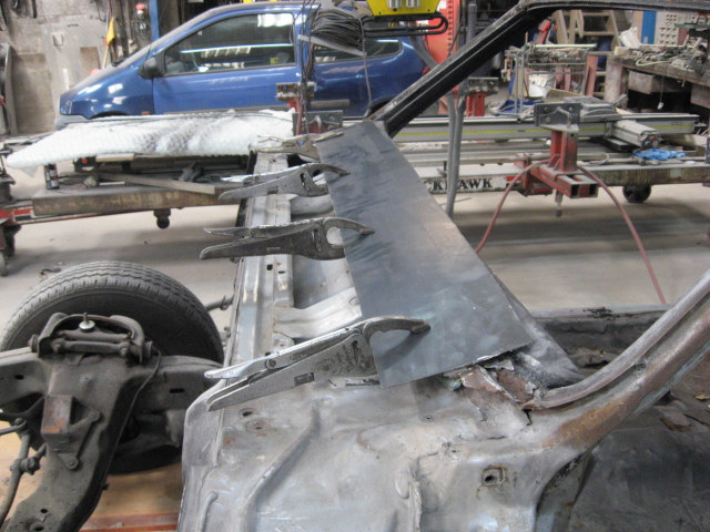 Voici un tout petit trou...je me dis allez un p'tit coup de mig pour combler l'ensemble rapidement et le tour est joué...ben voyons...ca c'est dans les films...verdict une saigné à la disqueuse de 4 cms car le moindre coup de mig d'un tiers de seconde trouait la tôle tellement celle-ci était fine et vraiment rouillée autours !