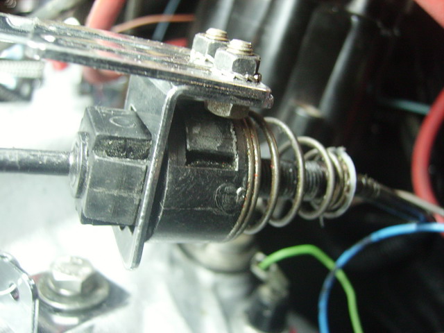 J'ai volontairement pris en gros plan la photo de la fixation du câble de kickdown pour vous montrer le réglage possible de la patte secondaire mais aussi le réglage que comporte le câble même avec son ressort...