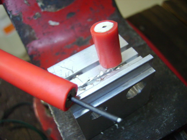 Même punition pour la 2 èm partie à dénuder en utilisant la 2 êm fente qui permet de dénuder seulement l'enveloppe du fils rouge !