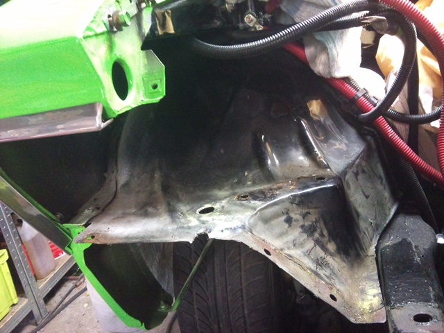 Et voila les intérieur d'aile sur lesquelles vous pouvez encore voir la teinte verte qui à réussi à se retrouver ici lors de la peinture de l'auto