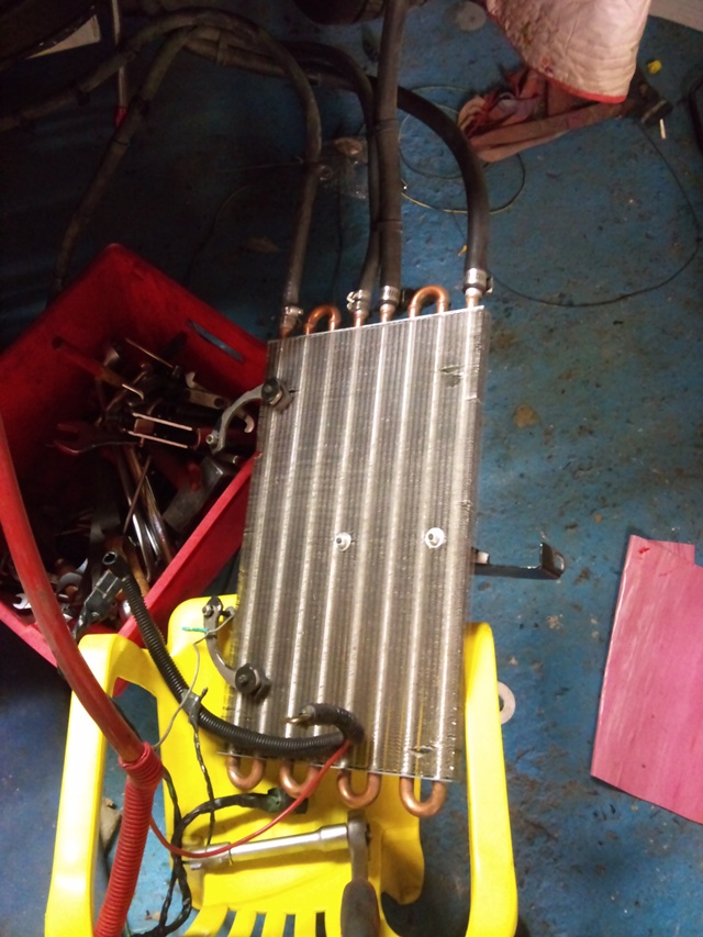 Ici je déposait le radiateur de refroidissement d'huile de boite et de moteur normalement situé devant la face avant et le radiateur d'eau !