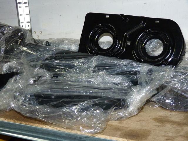 J'ai donc décidé d'envoyer une bonne quinzaine de pièces pour y subir ce traitement à l'époxy, la couleur sera noir satiné...(support de batterie, support de phares, de calandre, de grille, de pares chocs, pattes diverses, globes de fixation des phares avants....mais Surtout La Face AVANT recevant une bonne partie de ces pièces ainsi que les radiateurs d'eau et d'huile
